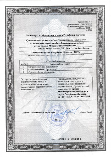 | Адрес местонахождения образовательной организации* | 368592, Респблика Дагестан, Кайтагский район, с. Ахмедкент, ул. Магомеда Габибуллаева, 1 |